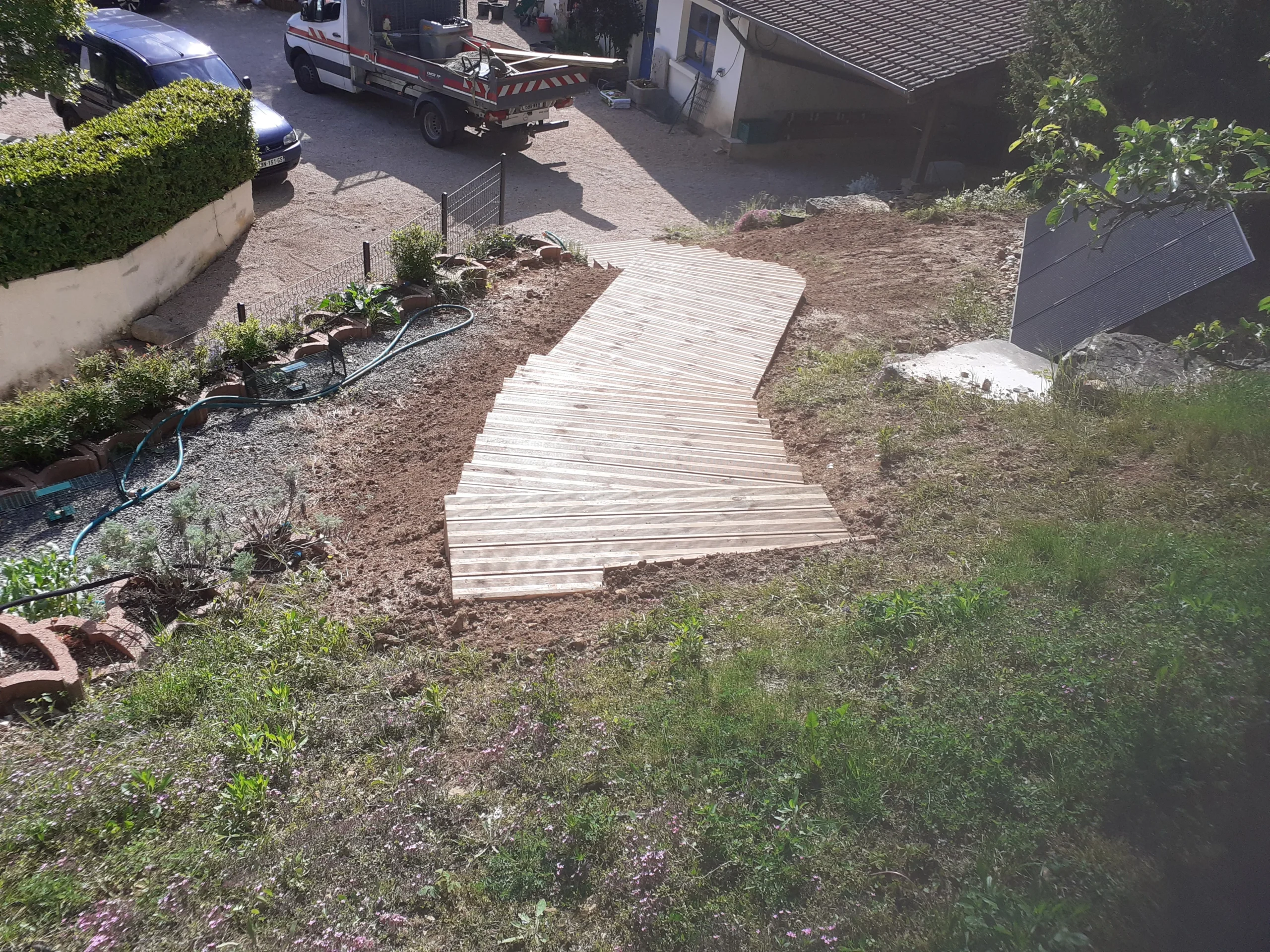 Découvrez quelques exemples de nos chantiers : terrasses, clôtures, revêtements de sol, végétalisation et aménagements.
